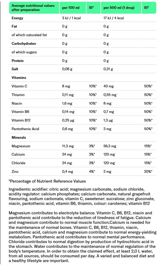 Sweet, sour and slightly bitter: enjoy our grapefruit electrolyte drink with 4 electrolytes, 6 vitamins and zinc! Be it for travel or for exercise, recharge your electrolytes and let your water work harder for you.